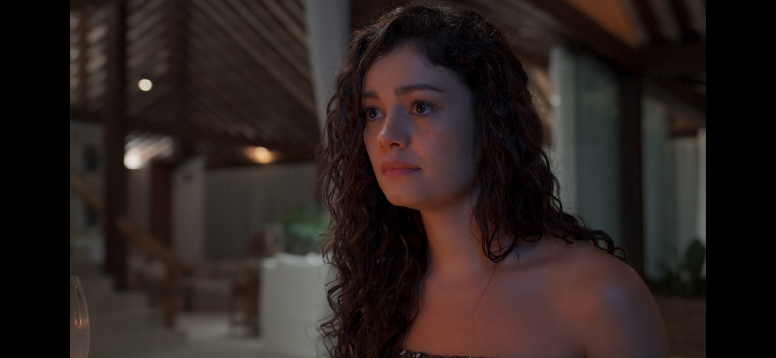 A conversa segue com Gerluce observando que a correria do trabalho costuma antagonizar qualquer regalia (na verdade, é menos o ritmo do que as desigualdades trabalhistas que atravancam as regalias). O diálogo que, antes, tangenciava o social, poderia seguir nessa toada, mas Gerluce faz uma redução desse molho, evaporando a rotina dura para trazer algo de si, mais profundo, um desejo íntimo que lhe embarga a voz. Quando ela abre a boca para dizer “tô me sentido…”, Paulinho a interrompe, perguntando “o que?”. O interesse afoito e genuíno não é egóico; pelo contrário, ele deseja ouvir tudo e qualquer coisa que aquela mulher tem a dizer. A interrupção, no entanto, acaba sendo o golpe final em Gerluce: não é só a voz que embarga, mas também os olhos que umedecem entre a tristeza de uma vida doada e o brilho de ter diante de si algo novo, algo que, de alguma forma, a resplandeça. Ela, então, abaixa o rosto e, com um quê quase trágico, despeja no prato, junto aos camarões, a palavra que ela também imagina não lhe caber: “… uma princesa”.