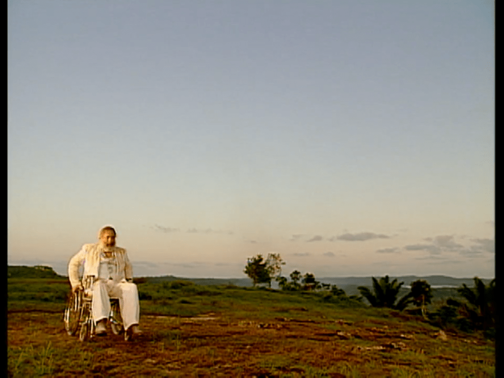 Era um homem em uma cadeira de rodas. André nunca havia visto um homem numa cadeira de rodas. Por que será que ele estava assim? A televisão não respondeu, porque a televisão não responde nada, ela mostra. Mostra um homem de camisa branca, cabelos brancos, barba branca; branca e comprida, bem maior do que a do pai ou do que a de qualquer outro pai. Anos depois, o menino descobriu que aquele sujeito também era pai, inclusive um pai simbólico. Mas, naquela noite, na hora daquele (provável) último capítulo, era só um homem diferente de todos os que ele já havia visto; um homem que lhe roubou o conto do trem-fantasma para, em seguida, roubar-lhe a atenção, o olhar, a memória, os anos.
