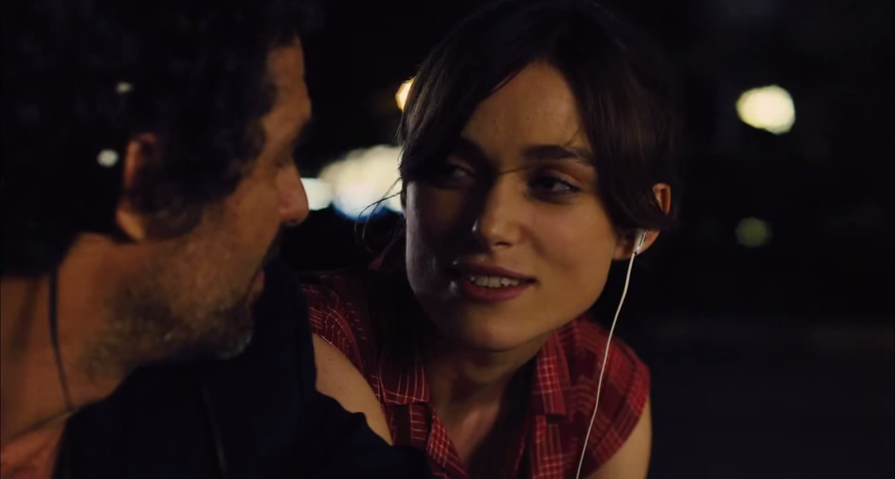 Keira Knightley surge com uma das mais potentes interpretações deste ano. A dor de sua personagem é comum, cotidiana, mas não por isso menos esmagadora (vide a cena da mensagem de voz). No entanto, é construída com certa leveza, como se ela incorporasse outras tantas mocinhas românticas da história do cinema. Não poderia ser diferente; o filme tem consciência do quão indispensável é Knightley para sua força e sobrevivência, já que traz à tona algo também intrínseco à história do cinema – o fascínio pela beleza feminina, aqui concatenado na atriz. A compreensão que Gretta chega ao final pode ser menos recorrente nas comédias românticas musicais, mas parece cara às histórias de Carney, que pela segunda vez, gira em torno de um personagem “de passagem”, uma dessas figuras que entram nas vidas das outras, passam e vão embora. Em Apenas uma vez isso é quase trágico, já que da transformação, volta-se à solidão. Aqui não: Gretta é elemento restaurador para Dan, ainda que os caminhos deles não estejam para sempre entrecruzados, ainda que seja impossível para ela voltar ao passado. Termina sozinha, mas plena, andando de bicicleta pela cidade. Contudo, não cabe mais um plano médio ou mais aberto (nem a cidade nos interessa mais!). A imagem final não poderia ser outra: sobre as luzes urbanas difusas, o sorriso desconcertante de Keira Knightley se impõe sublinhado pela força do close up e pontua o filme. Com graça e beleza.