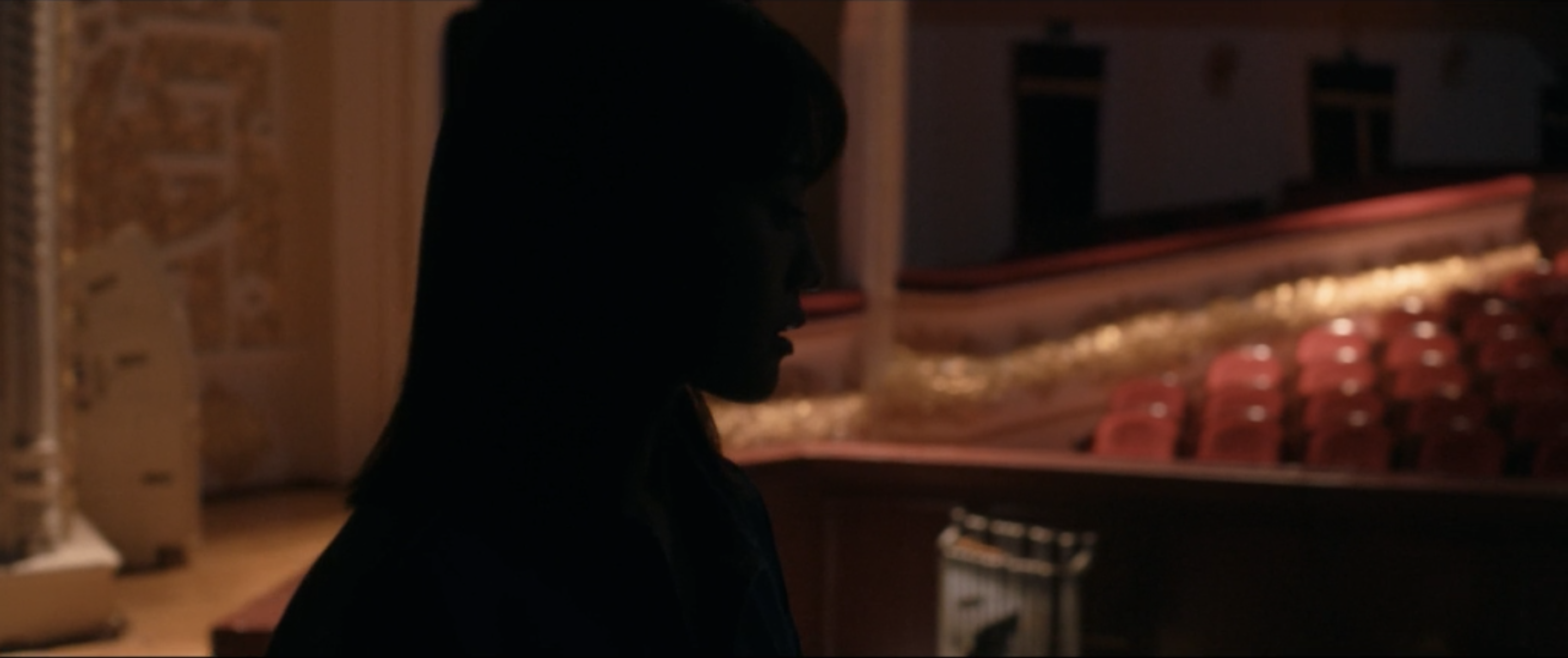 Quando essa cena ocorre, outra já havia se passado no Navoi: nela, Yoko adentra justamente as antessalas adornadas, descritas por Temur, até chegar ao auditório, onde a mise-en-scène de Kiyoshi Kurosawa opera a mudança do registro do físico para o metafísico: a transformação da luz e o surgimento de uma orquestra no fosso são os elementos que cercam a fantasmagoria que sobe ao palco – a própria Yoko, não em corpo, mas em espírito. Sobre o palco, ela começa a cantar nada menos do que “Hino ao amor”.