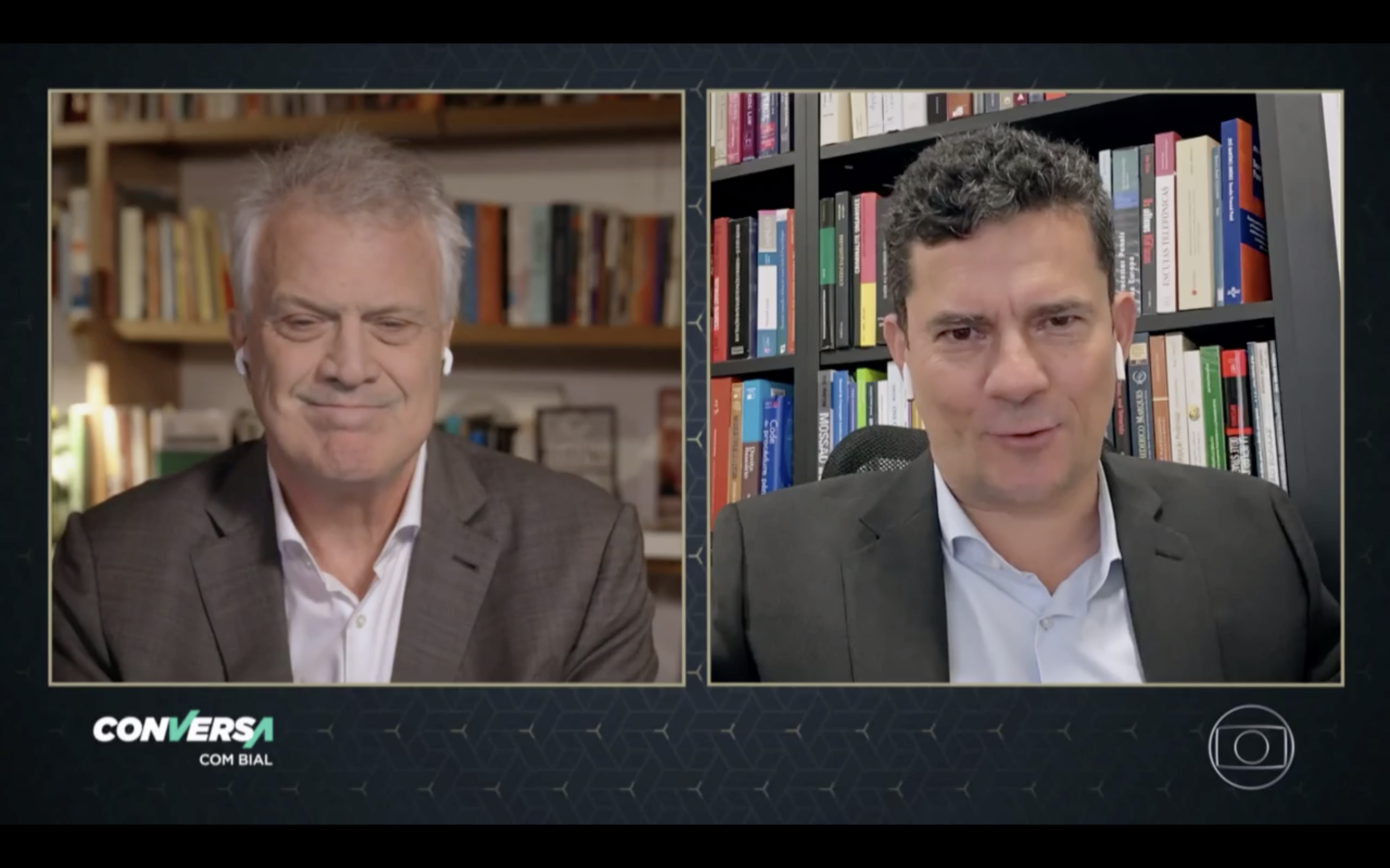 Exibida em 17 de novembro no talk show Conversa com Bial, a entrevista com o ex-juiz da Lava Jato e ex-Ministro da Justiça do governo Bolsonaro durou 33 minutos. Na introdução, Pedro Bial logo lembrou que aquela era mais uma edição de uma série de entrevistas com pré-candidatos às eleições de 2022, e fez questão de dizer que o ex-presidente Lula está entre os convidados (contrariando uma ironia recente do apresentador sobre Lula). Bial, então, leu o texto que apresentava o interlocutor da noite como “um homem público que provoca tantas paixões a favor e contra”. Essa referência inicial ao convidado surge com menos de um minuto do programa, mas o jogo de palavras dá o tom dos trinta minutos seguintes – paixões a favor e contra. Bastaria uma bisbilhotada num dicionário de antônimos para que se encontrassem sínteses que mantivessem o sentido das tais paixões contra: ódio, aversão, desprezo são algumas possibilidades, mas inconvenientes de se associar a um candidato que desponta como o único da tal terceira via a se aproximar de uma dezena percentual nas pesquisas. Bial preferiu apostar numa ambiguidade que atenua o valor do termo paixão. Desta forma, não só torna menos espessa a atmosfera de sentimentos e ressentimentos ao redor de Sergio Moro como o realoca para o pragmatismo do a favor ou contra, que deve dominar as eleições do ano que vem.