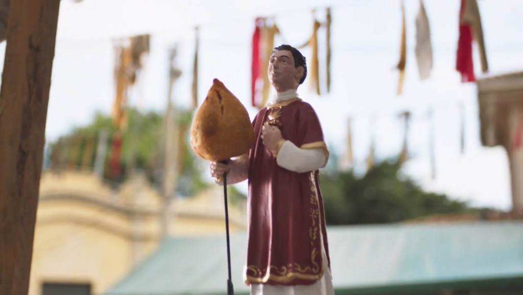 Entre várias participações especiais (algumas comoventes, como as de Lima Duarte, Rejane Faria e Carlos Francisco), a de Falabella é curiosa, já que o próprio esteve envolvido em três sitcoms familiares Globais, com ingredientes que constam aqui, mas em dosagens diferentes. É verdade que há um movimento entre Sai de Baixo e Pé na Cova (passando por Toma lá, dá cá), mas, em todas elas, a representação negocia, em maior ou menor grau, com estereótipos e com o popular encarado como exótico (e só Pé na Cova retratava, de fato, um universo inteiramente popular). Aliás, o episódio dessa participação traz uma das imagens mais engraçadas de toda a série: as estátuas de santos empunhando coxinhas (talvez nosso salgado mais típico e popular), ideia de Pablo e Luisão para contornarem a armadilha do padre mau-caráter e não saírem no prejuízo durante uma feira religiosa. A incongruência se infiltra da situação à célula mínima da imagem em movimento: a cerca de orelhões, o buraco no assoalho do carro, a cachorra Caca partindo num mototáxi, os meninos encostando os mamilos na cerca elétrica, Pablo recompondo “A Criação de Adão” com o Papa (com Paulo Vieira surgindo por trás do Pontífice) são apenas alguns dos planos que têm essa autonomia do riso, brincando com os contrastes e absurdos em um único quadro.